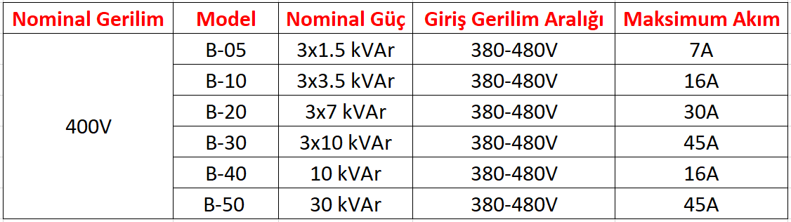 B serisi endüktif yük sürücü modülleri, dinamik güç faktörü kontrolü uygulamalarında 30kVAr’a kadar olan şönt reaktörleri sürmek için tasarlanmıştır.