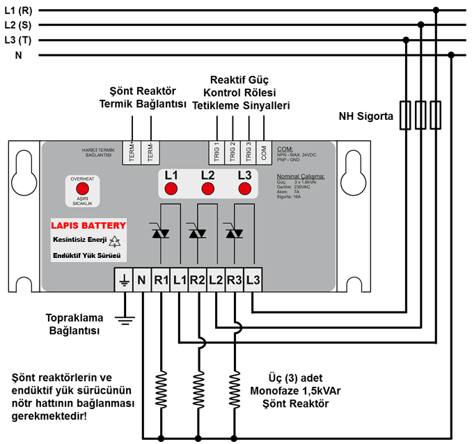 - - Harici termik terminalleri sayesinde şönt reaktörü aşırı ısınmalara karşı koruması.